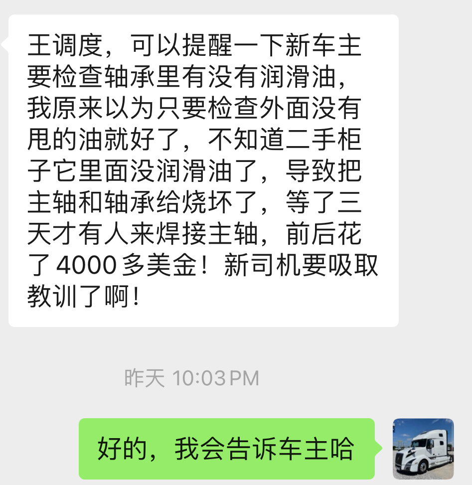 贴个这个警示纸在卡车里,一定注意倒车下车多看看。大多事故都在货场与修息站。
